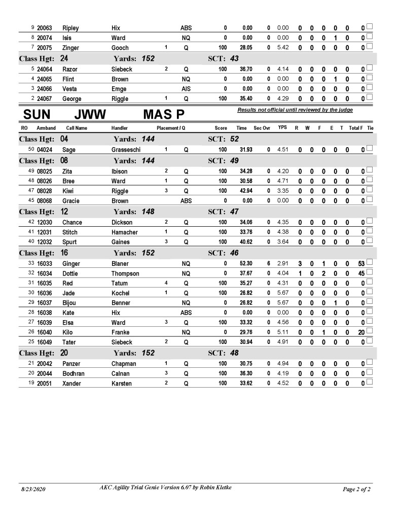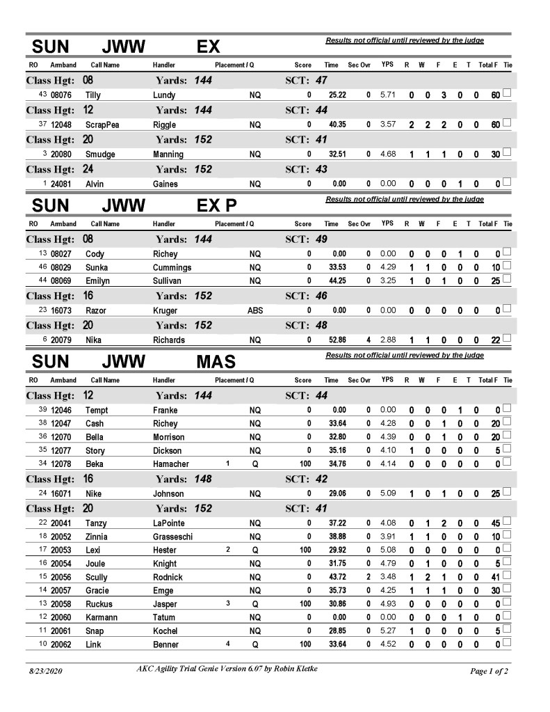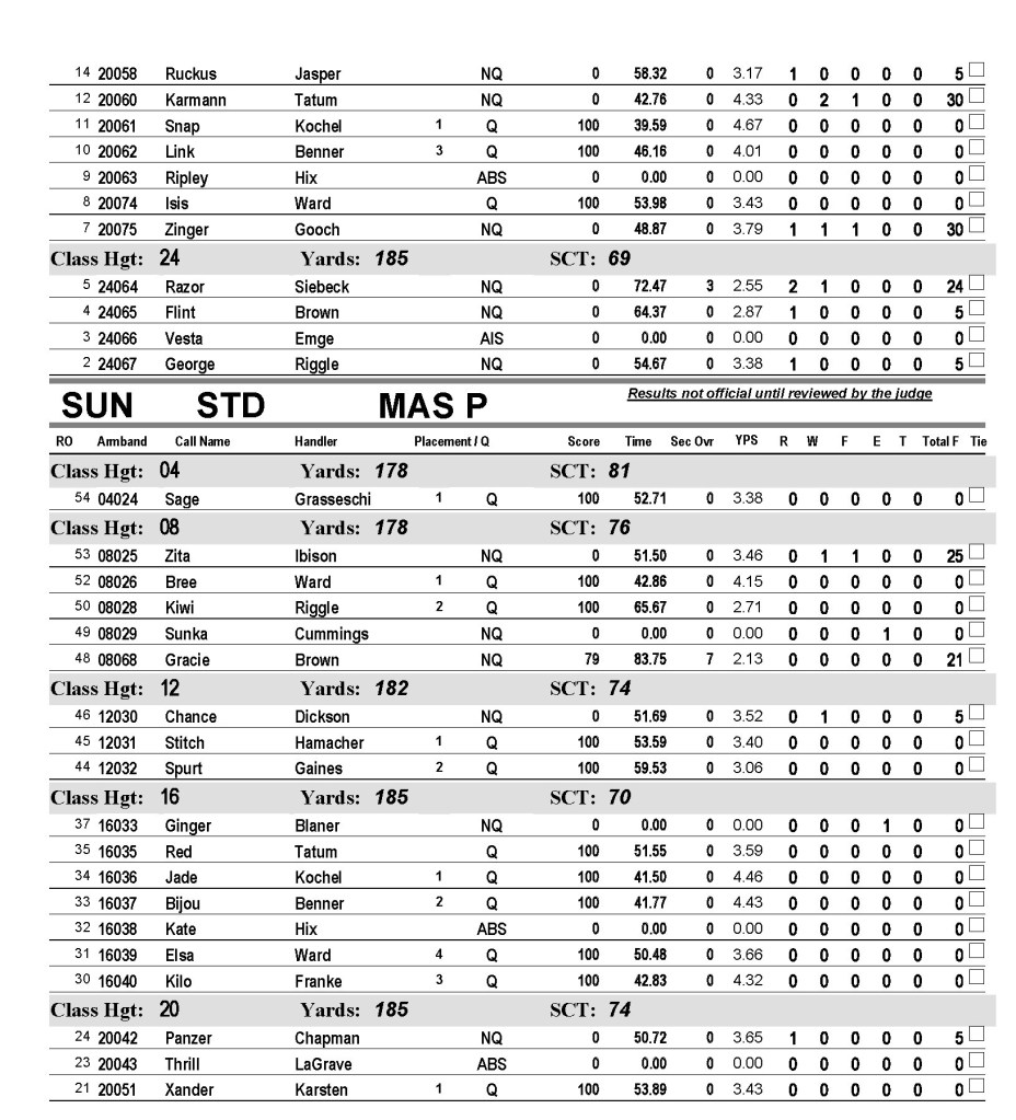 SUNDAY FUNDAY! STANDARD PREMIER STD PREMIER results PDF EXCELLENT/MASTER STD E-M results PDF OPEN STD OPEN results in PDF NOVICE STD NOVICE results in PDF JWW EXCELLENT/MASTER JWW E-M Results in PDF OPEN OPEN JWW results in PDF NOVICE JWW JWW NOVICE results in PDF Like Loading...